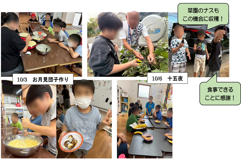 前日には、お月見団子をみんなで作り、お月見への雰囲気を高めています。