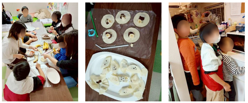 ハロウィン当日の 10/31(金)。まずはハロウィンに因んだおやつを、自分達で作ります。